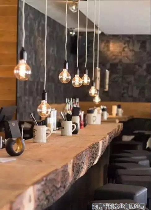 直接把木頭切開(kāi)做成桌面,