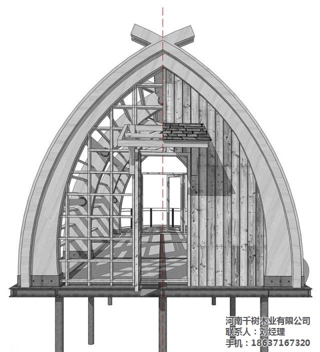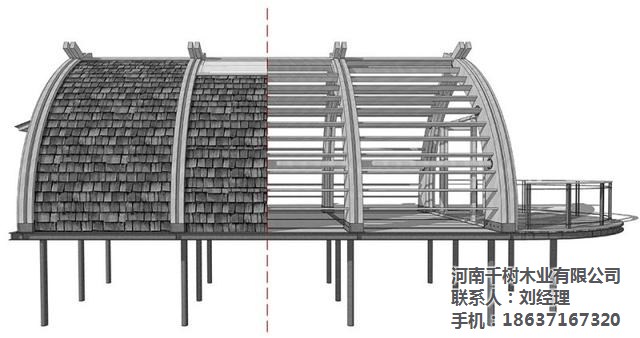 ▼建筑內(nèi)外清晰可見(jiàn)拱梁和圓木構(gòu)成的完整結(jié)構(gòu)體系