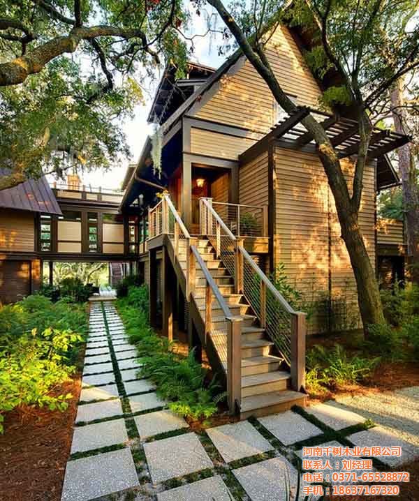 一般都會選擇歐美風格,兩到三層結構,面積在四百平左右,因為這樣的木屋足可以滿足中國人的需求,無論是度假或是居住,無論是一家?guī)卓诨蚴桥笥褋矸露家詽M足.在現(xiàn)在工業(yè)化的時代,太多的化學物品占據(jù)了大多數(shù)的生活用品中,住著原木的別墅房屋,回歸大自然的懷抱也是很多人的夢想.