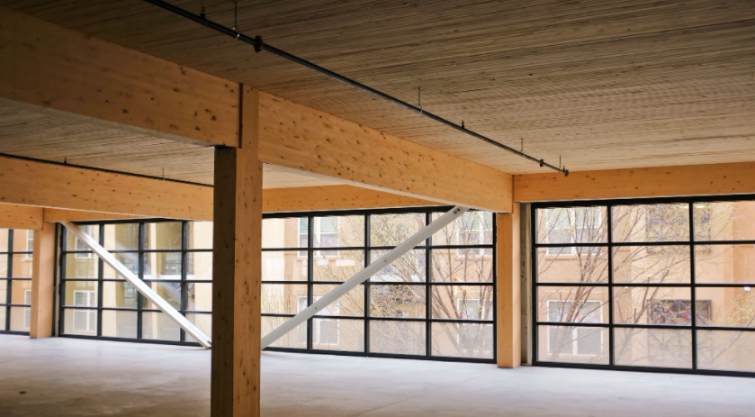 StructureCraft 在木材和材料工程方面擁有非常專(zhuān)業(yè)的知識(shí),結(jié)構(gòu)工程團(tuán)隊(duì)將內(nèi)部 SPF 、DLT 面板用到木質(zhì)走道的設(shè)計(jì)中,膠合木梁柱支撐了樓板。