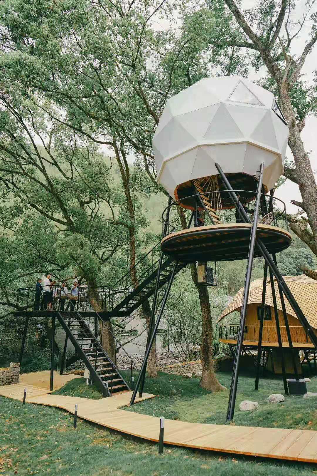 民宿木屋建筑不受地形限制,大多數(shù)傳統(tǒng)房屋只能建在平地上,而民宿木屋建筑可以建在平地、水面、屋頂、樹木上,極大地滿足了不同客戶對民宿木屋的需求。