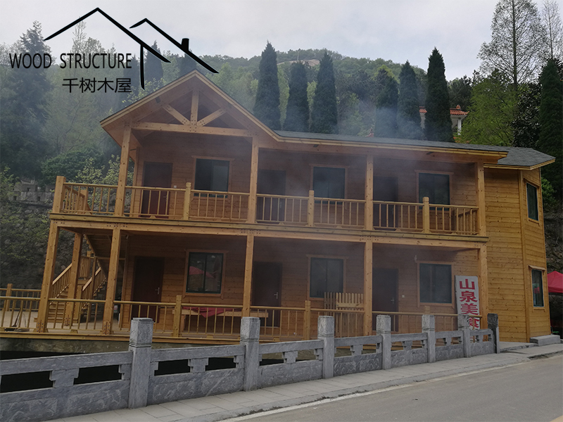 風景名勝區(qū)的復式辦公樓木屋和20個售賣小木屋由河南千樹木業(yè)有限公司(以下簡稱千樹木屋)設(shè)計并建造。