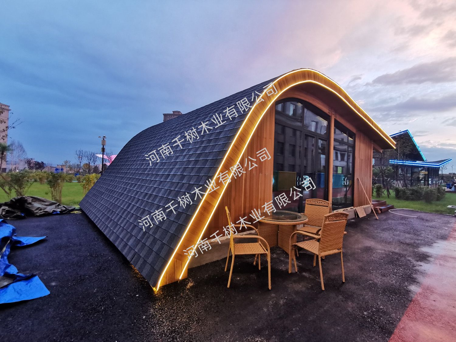 項目介紹:木屋定制。采用紅雪松無節(jié)外飾面