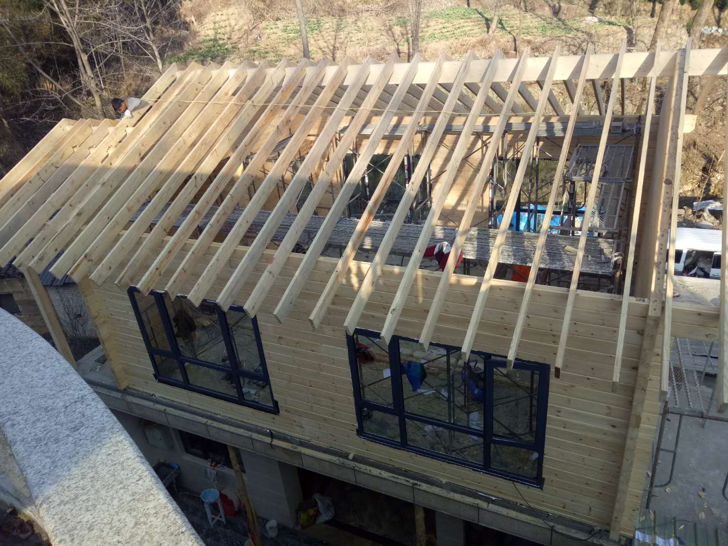 梁柱輕型木結(jié)構(gòu)現(xiàn)在應(yīng)用比較多,現(xiàn)場(chǎng)組裝快且成本較低,需要的就是工廠精細(xì)化加工,把每一條木條都當(dāng)作積木精度高的加工,現(xiàn)場(chǎng)直接榫卯連接,安裝快且結(jié)實(shí)耐用。