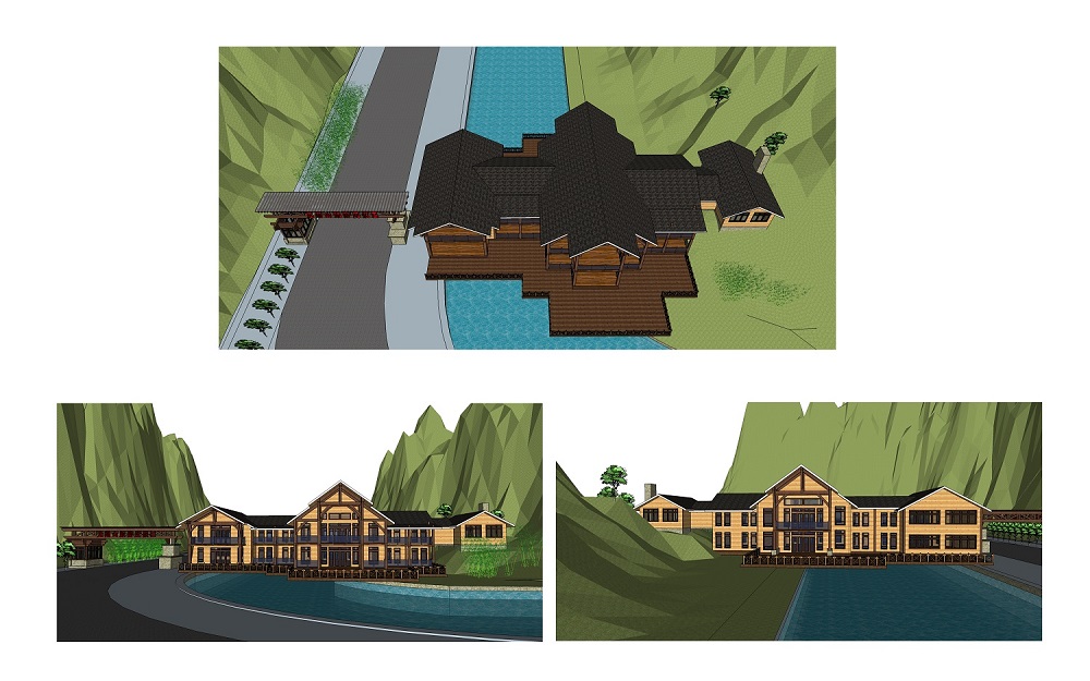 接待中心位于該景區(qū)大門口,總建筑面積1170㎡,分為上下兩層,建筑部分坐落在河面跨度21米的山間河道上方,設計師克服了跨河橋面的撓度問題使得項目施工最終順利完成。本接待中心木屋的主體結構采用的是美國花旗松膠合木,實現了大跨度的結構形式,墻體結構采用了標準的2*4工法施工,外墻掛板采用了紅雪松無節(jié)材。室內設計有中央空調,煙霧報警及噴淋系統(tǒng)。功能布局有接待廳,辦公室、母嬰室、民俗展示區(qū)、公共衛(wèi)生間及會議室。通過先期的設計,在保證項目的功能性及節(jié)能效率上發(fā)揮最大作用,地面使用率達到最高且建造速度快,安裝時不受氣候條件影響,同時最大限度的減少現場施工量,縮短施工周期,項目完成用時90個工作日,該項目自2017年4月交付使用以后受到甲方及游客的一致好評。